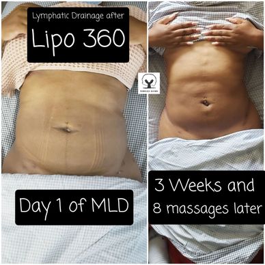 This beauty had corrective surgery and Lipo- 360. Manual Lymphatic Drainage was the technique used in these sessions.